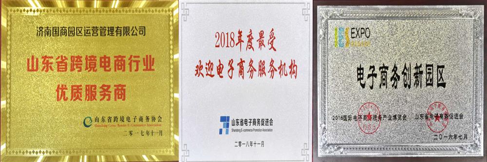 山东省跨境电商行业优质服务商(山东省跨境电子商务协会,2017) 2018年度最受欢迎电子商务服务机构(山东省电子商务促进会,2018) 电子商务创新园区("国际电子商务服务产业博览会山东省电子商务促进会",2016) 山东省电子商务示范基地(山东省商务厅,2016) 山东省众创空间(山东省科学技术厅,2017)