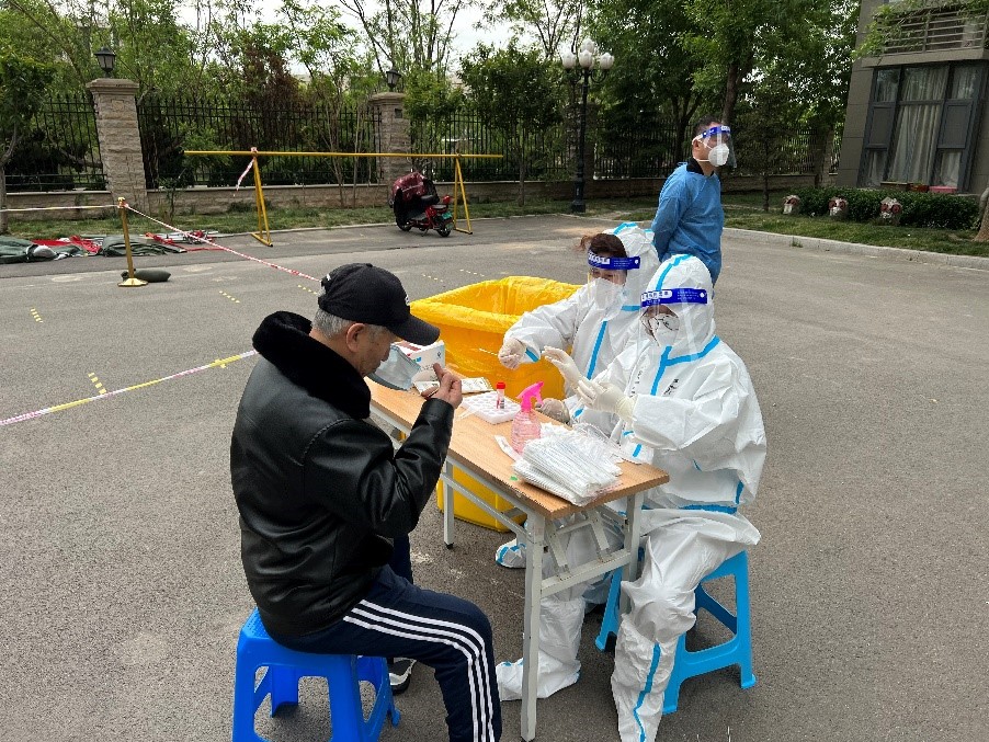 在高新区临港街道十西村,由于位置偏僻,抗疫人手短缺,产发园区集团青年志愿者李振早早前往,与村书记详细了解村庄疫情防控情况,听从村委安排,会同村民防控小组把控村庄主要出入口,严格落实所有人员出行通行时“亮码”“扫码”工作,守护一村安全。
