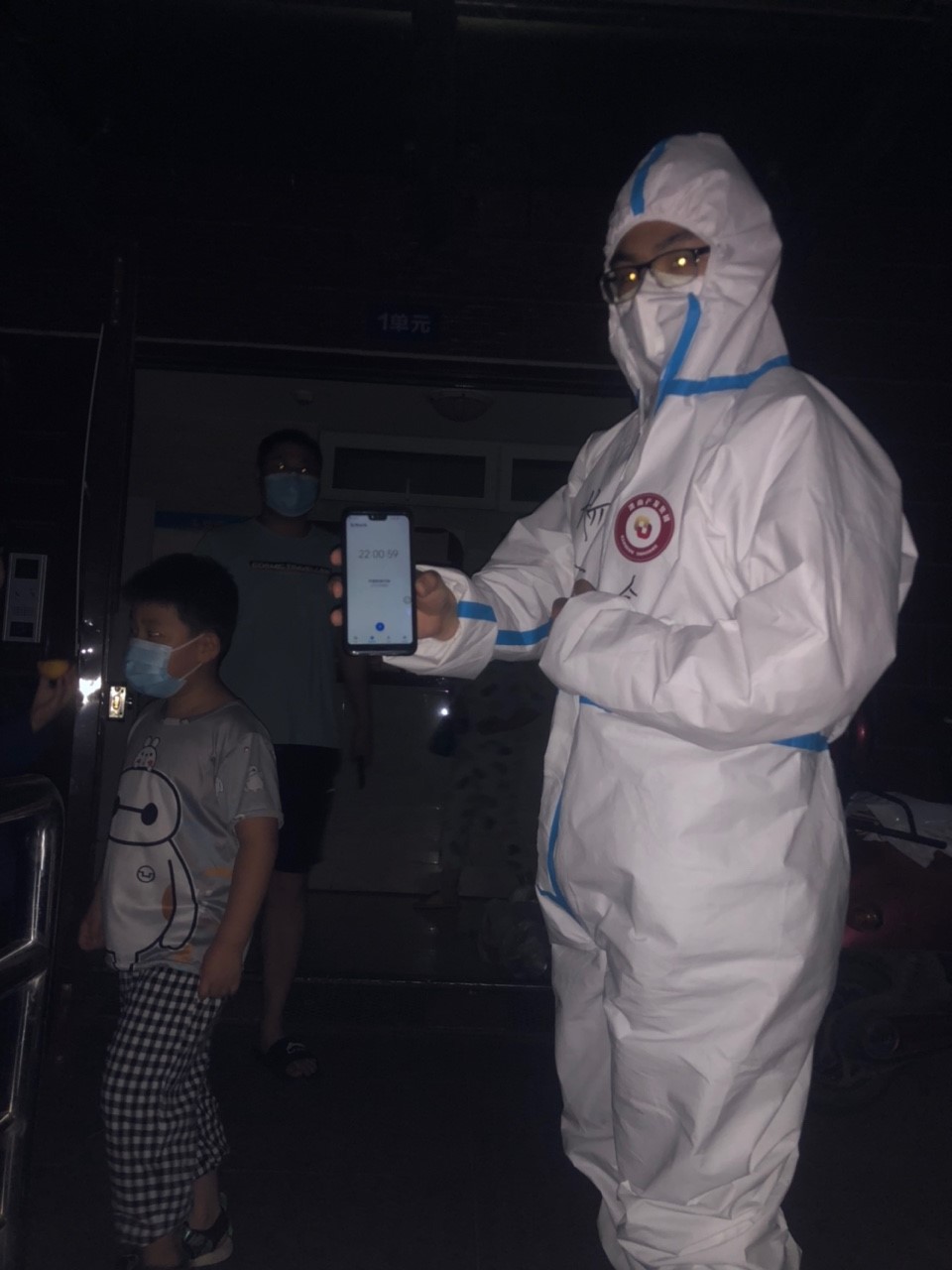 在疫情防控最吃紧、最关键的时刻,山东金钟科技集团坚决贯彻落实济南市委、市政府关于组织企事业单位人员参与社区疫情防控的紧急通知要求,积极响应济南sunbet申搏选派人员下沉参与基层社区防疫的号召,共选派出翟思成、刘贵武、冯鹏飞、闫春贞、郭正亮、杨世兴、赵士民、杜瑞帅、李登哲、侯志强、刘欣、张现录等12名精兵强将到基层社区参与疫情防控工作。“金钟大白”兵分三路,第一时间到达天桥区滨河雅居社区,槐荫区锦绣城社区和锦绣睿园社区,协助社区进行核酸检测引导、封控楼值守、人员信息登记等各项工作,他们每天早出晚归,无论是雨中还是晴日,清晨还是深夜,他们穿着厚重的隔离衣,竭尽所能、坚守岗位,听从指挥、勇于担当,为社区筑起了一道坚不可摧的疫情防线。