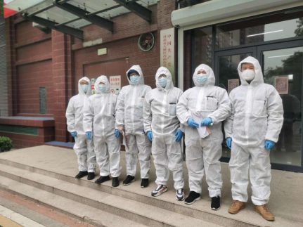 在槐荫区锦绣睿城社区和锦绣城社区,志愿团队由刘贵武带队,闫春贞、李登哲、侯志强、刘欣、张现录6人组成,他们兵分两组,每天早上5点30分出发,到达社区后立即开始准备核酸检测,“请大家排好队”、“请保持1米距离”、“请提前打开健康码”......在核酸采样现场,志愿者们穿着隔离衣,戴着口罩,这样的提醒引导要重复几百次,不一会儿就口干舌燥,但是他们坚持耐心引导,把疫情防控放在第一位,按规定进行消杀,提醒居民保持距离,和病毒赛跑和战斗,不能有丝毫马虎和懈怠。他们一直工作到晚上近10点,每天回到住处已经很晚了,但第二天依然按时到达社区。刘贵武说,“医务工作者和社区工作者比我们坚守的时间更长,他们更辛苦!我作为一名预备党员,槐荫队的队长,更应该冲锋在前,带领大家圆满完成任务,接受党组织的考验。”