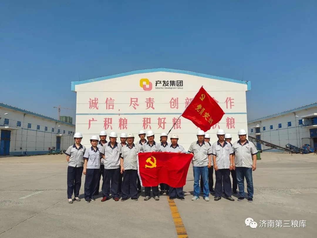 一直以来,第三粮库党支部在济粮集团党委的带领下,坚持将党建工作和生产经营相融合,积极创建 “红色引领,绿色储粮--共绘粮库发展蓝图”的党建品牌。他们以党建品牌建设为抓手,积极发挥基层党组织战斗堡垒作用,并形成了独特的品牌理念。在夏粮收购中,党员干部们组成党员突击队,深入收粮现场,带领广大职工不怕热、不怕脏的冲锋在业务最基层。他们亮身份、强素质、当先锋,用实际行动践行共产党员的责任与担当。