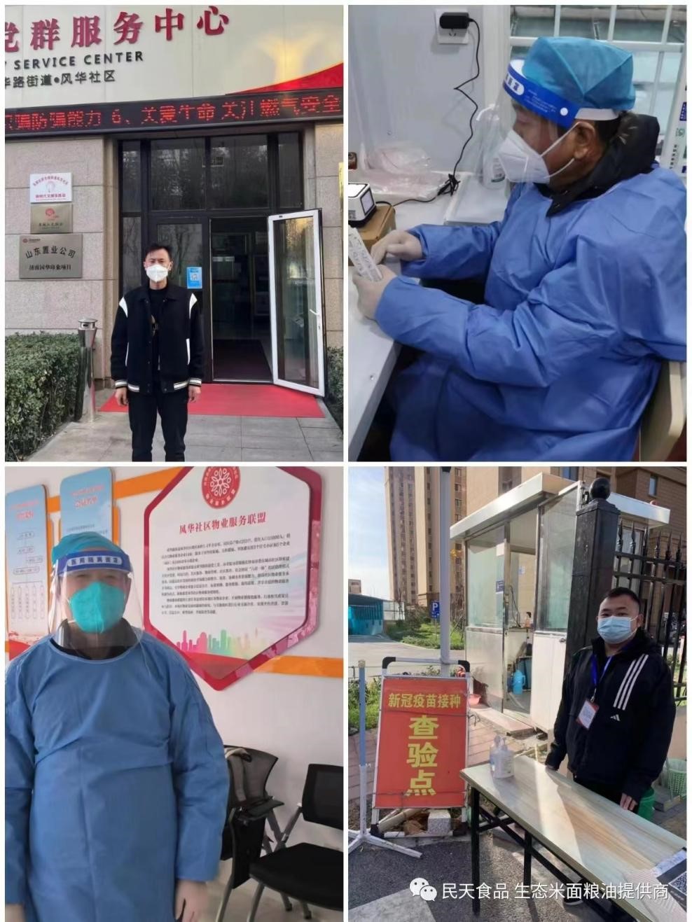 入冬后的济南,寒风凛冽,气温骤降,面对疫情与寒风,济粮集团闻令而动,党员干部主动请缨,义无反顾的冲在社区防疫的最前沿。他们无畏寒风,克服离家远,交通不便的实际困难,服从社区统一安排,积极配合社区开展工作,梳理排摸小区住户情况、核酸检测、楼道消杀,确保每一个工作都做到一丝不苟,时常忙到晚上十点钟以后,才拖着疲惫的身体返回家中。他们的无私奉献得到社区居民的一致点赞,“苦点累点不算什么,居民的理解就是我们最大的动力”,他们用实际行动时刻发挥共产党员表率作用,坚决为社区居民筑起一道坚不可摧的生命健康防线。